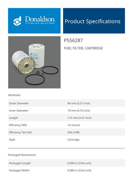 Donaldson P556287 Fuel Filter, Cartridge | Replaces the UFI Filter 24.361.00