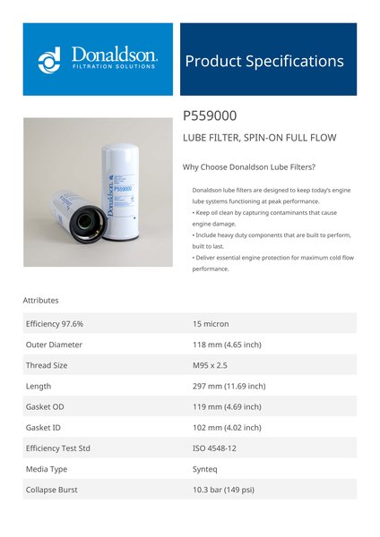 Why Choose Donaldson Lube Filters?Donaldson lube filters are designed to keep today’s engine lube systems functioning at peak performance.