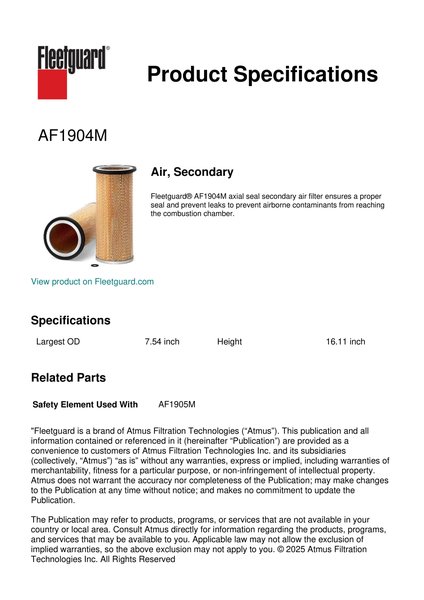 Fleetguard AF1904M Air, Secondary