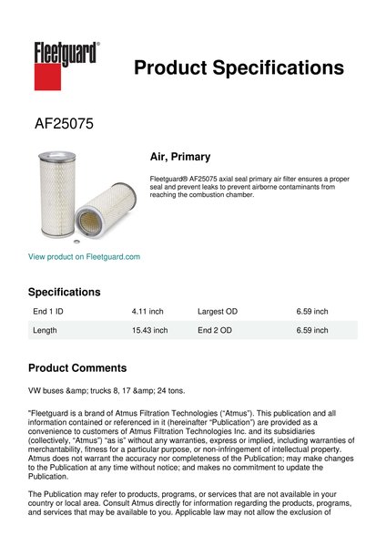 Fleetguard AF25075 Air, Primary