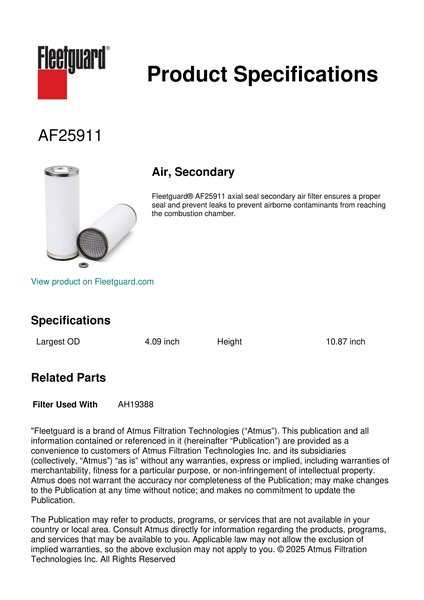 Fleetguard AF25911 Air, Secondary