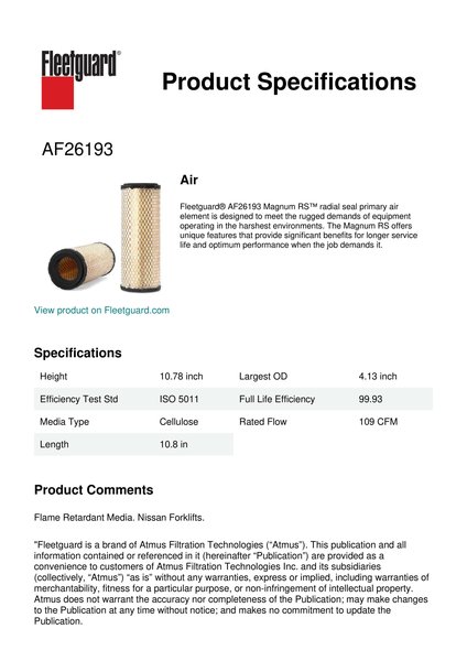 Fleetguard AF26193 Air