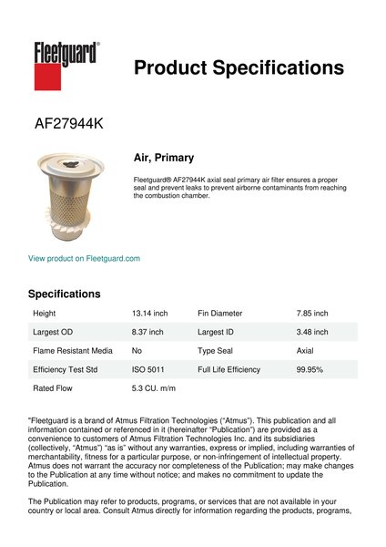 Fleetguard AF27944K Air, Primary