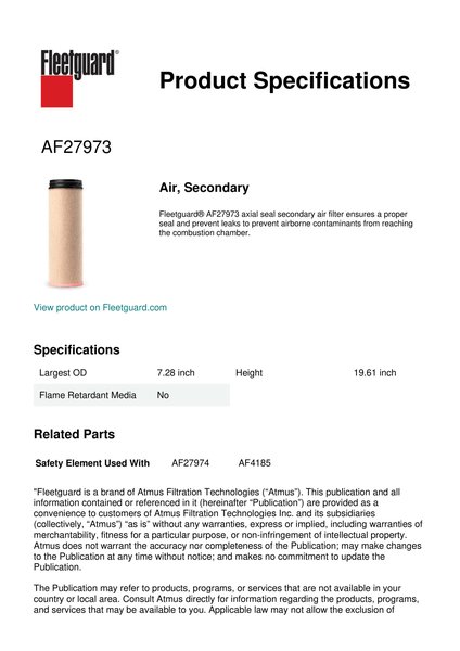 Fleetguard AF27973 Air, Secondary