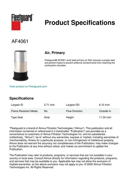 Fleetguard AF4061 Air, Primary