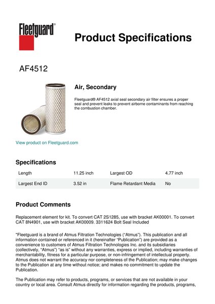 Fleetguard AF4512 Air, Secondary