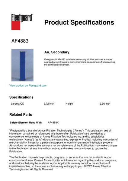 Fleetguard AF4883 Air, Secondary