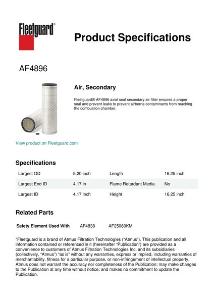 Fleetguard AF4896 Air, Secondary