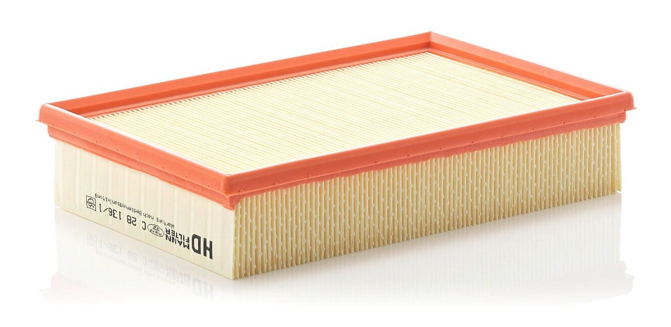 High-quality MANN-FILTER air filters for clean air intake and optimum protection for your engine, mass air flow sensor & other sensitive components / They meet requirements of modern engine technology. Highest dirt holding capacity and dirt separation efficiency, low flow resistance and high pleat stability ensure functional reliability during the entire service interval.