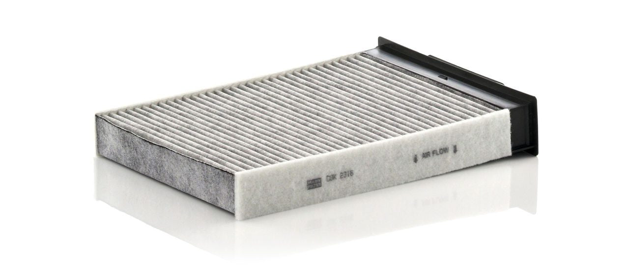 High-quality MANN-FILTER cabin filters with active carbon - nearly 100% protection from particles like pollen, diesel soot & tyre abrasion / Additional protection from harmful gases & unpleasant odour. The trated highly-effective activated carbon gives protection against harmful gases such as ozone, nitrogen oxide or sulphur dioxide and eliminates unpleasant odours during the entire service interval.