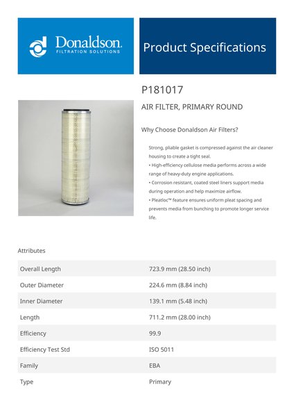 | Style | Air Filter, Primary Round |
