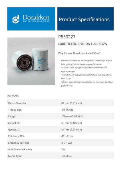 Why Choose Donaldson Lube Filters?Donaldson lube filters are designed to keep today’s engine lube systems functioning at peak performance.